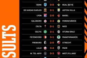 体育资讯10月24日讯 欧联杯联赛阶段第三轮比赛战罢,诺丁汉森林2-1波尔图,费内巴切1-0斯图加特,塞尔塔2-1尼斯,罗马、里尔、维拉落败。