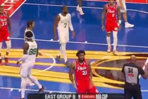 GIF-恩比德打成2+1,做不雅庆祝动作