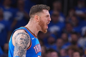 根据数据统计,此战之后,哈滕成为了雷霆队史上第一个以至少75%命中率砍下至少30+15的球员。